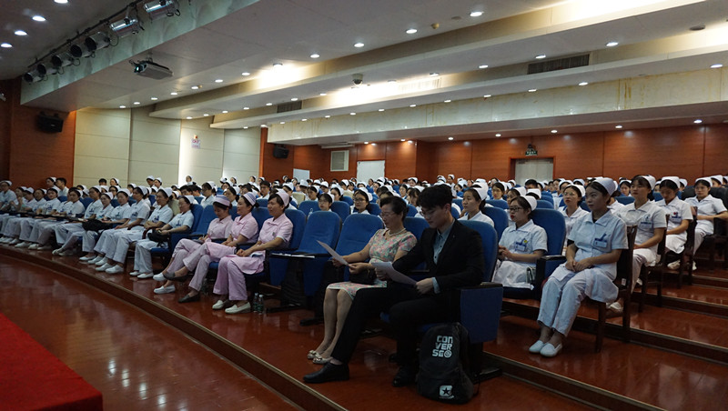 护理教研室主任毛平致欢迎辞,对来自23个不同院校的400名护理实习新兵表示欢迎。她说:“相聚是缘,相识是福,相助是爱,希望同学们珍惜学习机会,充分利用这段时间来完善自己”。ICU培训组长刘清平代表全院临床护理带教老师欢迎同学们成为湘雅三医院这个大家庭的一员,她强调护理是需要实践的学科,实习是临床护理工作的开始,希望大家掌握学习的方法,将理论运用到临床实践中去,在实践中不断学习,不断反思,尽快胜任护理工作,重视患者安全及自身安全。