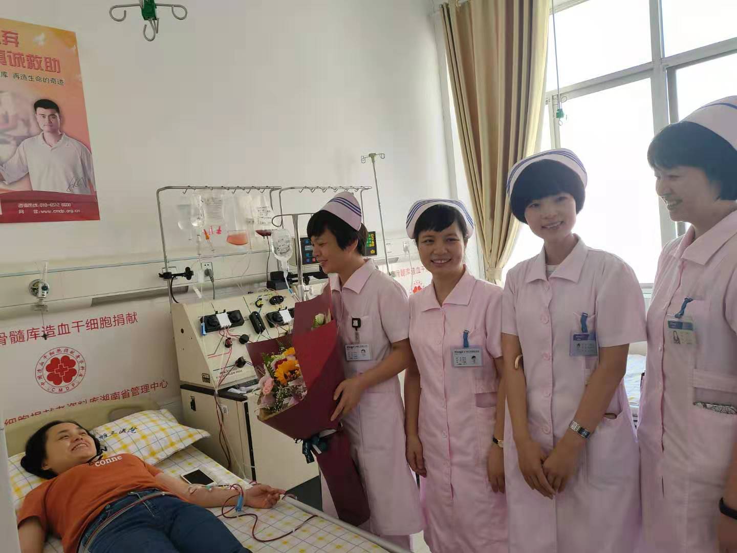 9月8日,中南大学湘雅三医院为常德市第一人民医院护士彭文娟皮下注射造血干细胞动员剂,并于9月12日顺利接受外周血造血干细胞采集,成功完成了外周血造血干细胞捐献,为广州一名重度地中海贫血小孩送去一份生命的祝福,送上白衣天使的一份爱心。
