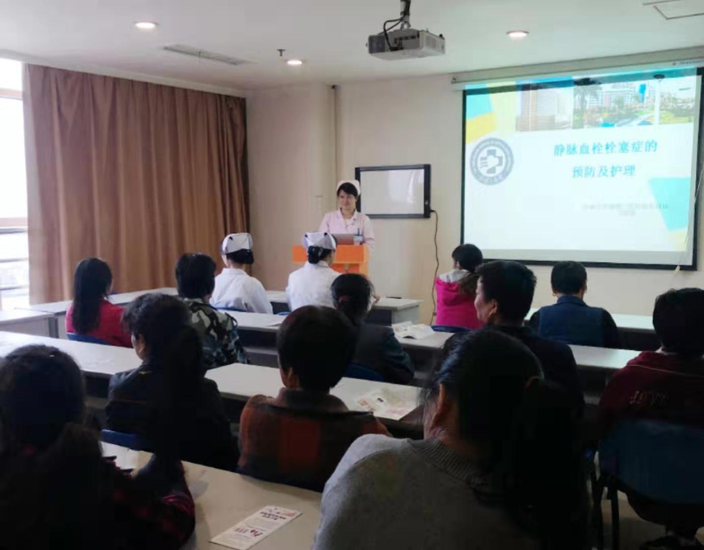 10月25日,以“静脉血栓栓塞症(VTE)的预防及护理”为主题的健康教育活动在中南大学湘雅三医院8楼示教室开展,本次健康讲座由烧伤科主管护师万丽霞主讲。