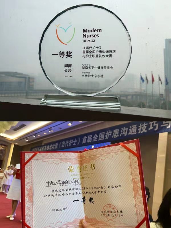12月14日,由湖南省卫生健康委员会指导、当代护士杂志社主办的“首届全国护患沟通技巧和护士职业礼仪大赛”在长沙举行,来自北京、山东、新疆、湖南等地的共32支代表队参加了此次大赛。中南大学湘雅三医院护理部精心组织,37病区护士长颜萍平担任领队,何微、崔丽娜、易杨梦妮、王瑜琪、王梦娇、常钰洁等代表医院参加大赛,以优异的成绩摘获大赛一等奖。