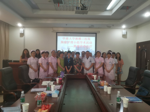 8月13日下午,为积极推进肿瘤营养临床护理工作开展,提升护理人员对肿瘤患者营养不良的认知,中南大学湘雅三医院肿瘤护理小组在肿瘤放疗中心二楼会议室举办肿瘤营养管理学术沙龙。活动特邀中国抗癌协会肿瘤营养专业委员会营养护理学组委员、湖南省肿瘤医院护理营养小组指导专家谢燕平老师进行授课,医院科研部主任、肿瘤科代理主任曹科,肿瘤科副主任黄程辉等出席,肿瘤护理小组成员、肿瘤科及头颈外科护士等30余人参加。活动由肿瘤护理小组副组长、肿瘤科二病区护士长郭娜主持。
