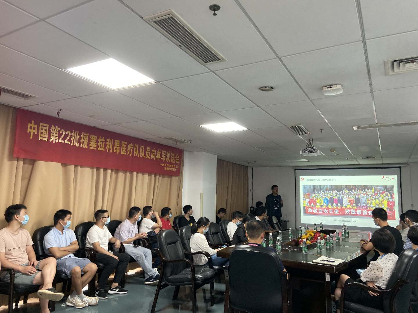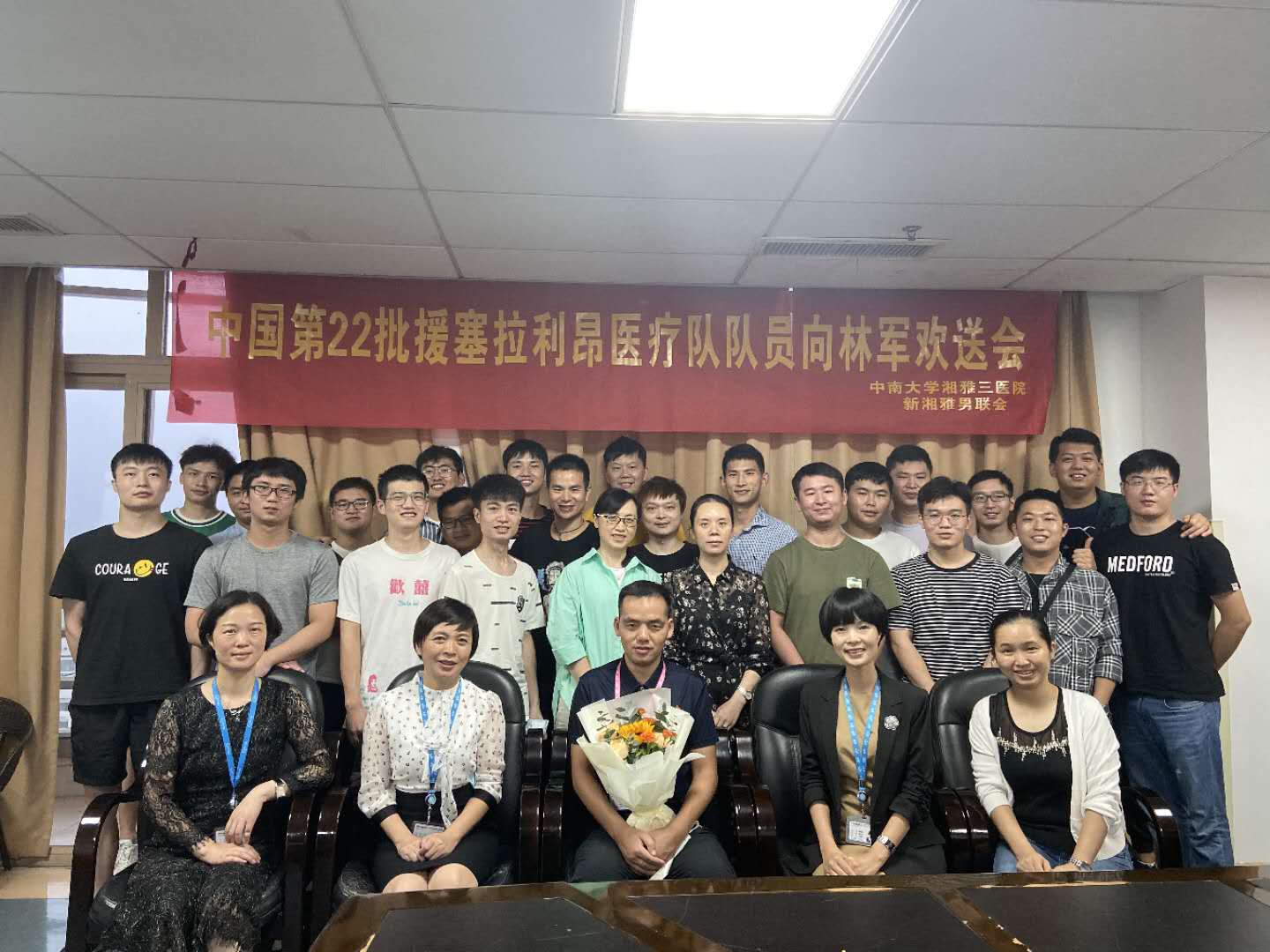 为大力弘扬抗疫精神,加强男护士队伍建设,凝聚奋进力量,同时欢送中南大学湘雅三医院第22批援塞拉利昂医疗队队员向林军,9月15日下午,由护理部主办、新湘雅男联会承办的“抗疫一线 有你有我”抗疫感悟分享会暨中国第22批援塞拉利昂医疗队队员向林军欢送会在外科大楼19楼会议室举办。医院护理部主任严谨、科护士长肖涛出席,急诊科护士长郭美英、李守根、张小红、副护士长曾佳以及新湘雅男联会全体成员参加。会议由护理部副主任谢建飞主持。