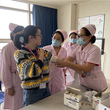 活动中,乳甲外科护士余隽、李慧分别进行了主题为《一例乳腺癌术后患肢淋巴水肿CDT治疗案例分享》和《淋巴水肿的研究进展》的理论授课。李慧对淋巴水肿的病因、病理机制、水肿分期、临床分期、治疗方法、健康宣教进行了详细讲解。余隽介绍了乳甲外科一例乳腺癌术后患肢淋巴水肿患者接受系统CDT治疗的经验,简述了该患者CDT治疗过程(水分子分析、臂围测定、关节活动度评定以及体格检查)及治疗模块(皮肤护理、手法淋巴引流(MLD)、多层绷带加压包扎(MLLB)、运动功能锻炼)等知识。