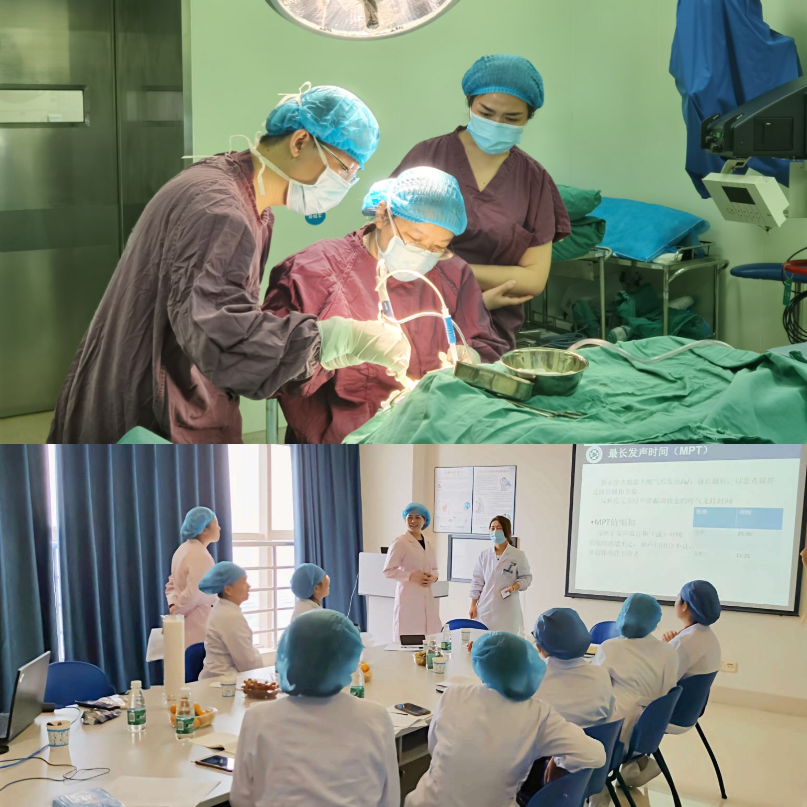 为确保教学的同质化和特色化,在基地负责人统筹安排下,根据中华护理学会的教学大纲要求,结合基地各专科的特色,制定了详细的培训计划,具体到每天各时间段的具体安排,并安排了专职一对一的带教。耳鼻咽喉专科开设了有特色的五个工作坊:嗓音康复、头颈肿瘤患者营养管理、喉癌术后气道管理、内镜洗消、吞咽功能训练工作坊,并在带教老师的一对一指导下进行实操。心血管专科学员们在冠心病亚专科、心律失常亚专科,高血压亚专科,心血管重症监护专科以及心胸外科轮换学习,各亚专科根据专科特色进行教学。在开设各种新进展的专题讲座及科研讲座等系列集中学习的同时,基地还精心为学员们安排了个案比赛、自选主题小讲课比赛及综述汇报,另外还开展急救演练、辩论赛、疑难病例护理查房等各种形式的教学,与学员进行分享和交流。