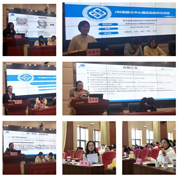 12月15日,湘雅三医院护理教研室与护理部举办的新湘雅临床护理教师循证实践能力提升班汇报会在科教楼三楼举行。中南大学护理学院院长唐四元,JBI循证卫生保健中心湘雅分中心执行主任郭佳、副主任孙枚,湘雅三医院护理教研室全体人员出席汇报会。全体学员、部分科室护士长、教学组长、科研骨干及全体护理研究生参加了会议,护理学教研室主任毛平任主持。