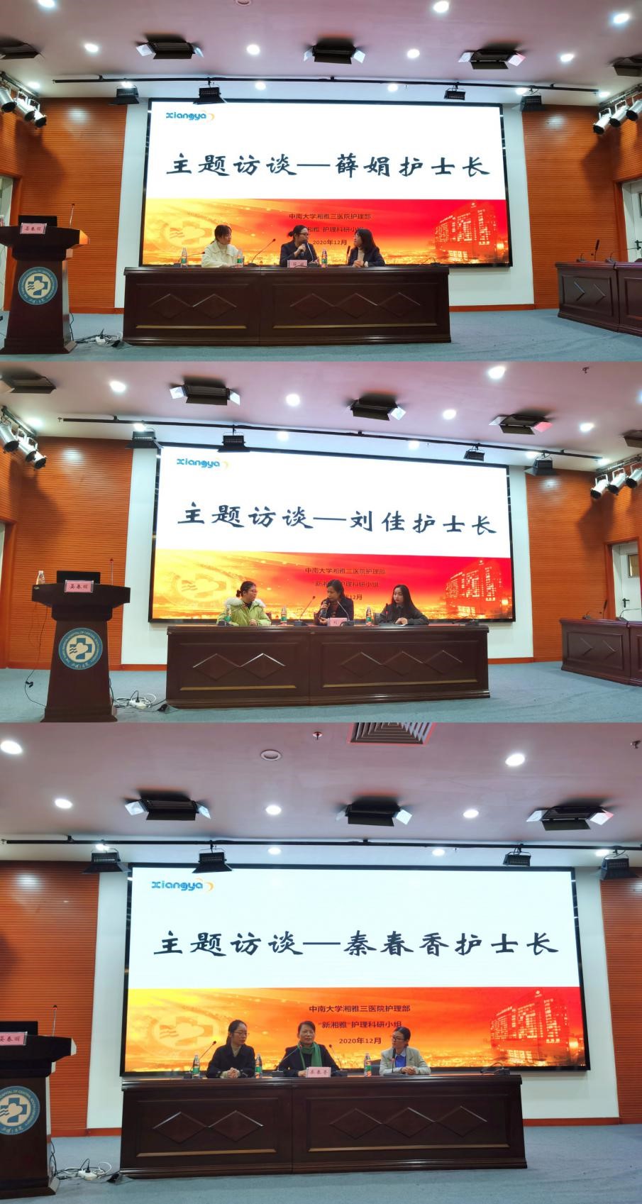 在接下来的以“规划”、“角色”、“价值”为主题的访谈环节。薛娟护士长、刘佳护士长和秦春香护士长分别就访谈问题分享了他们的想法与故事。关于规划,薛娟护士长建议大家制定3-5年计划,将职业生涯阶段化,才更有利于目标的达成。关于角色,刘佳护士长分享了如何平衡工作、科研、家庭的个人经验,她表示每个人在职业生涯中难免会经历困顿期,但重要的是要学会调整心态,顺势而为,才能走得更远。关于价值,秦春香护士长见解深刻,她表示作为生命的守护者,首先要肯定自身的价值,再用行动来践行初心、体现自己的价值。三位访谈专家都不约而同提到了“不忘初心”,旨在激励全体护士在前进之路永远铭记“白衣天使”的初心与使命。