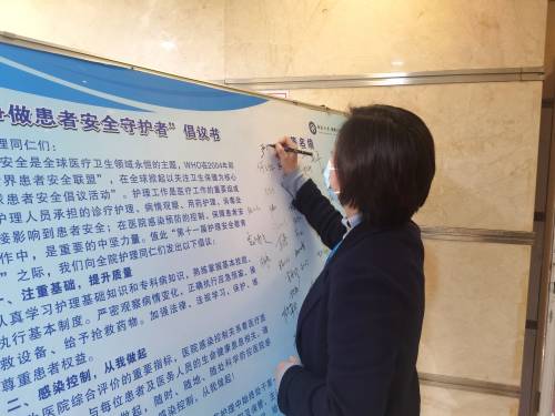 会前,欧阳文副院长带领全体护士长进行“共同守护患者安全”倡议活动并在倡议书上郑重签名;护理部主任严谨宣读“争做患者安全守护者”倡议书,倡议全体护理人员“注重基础,提升质量;感染控制,从我做起;加强观察,安全用药”三大方面,强调护士要熟练掌握护理基础知识和技能,注重防控院内感染,强化病情观察,保证安全用药,从而促进护理安全发展,提高整体护理质量。