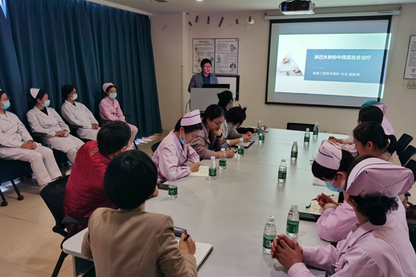 4月23日下午,中南大学湘雅三医院肿瘤护理小组在外科楼17楼示教室召开淋巴水肿主题学术活动。护理部副主任、肿瘤护理小组组长谢建飞以及肿瘤护理小组全体成员、相关科室护理骨干、实习同学等30余人参加。本次学术活动由乳甲外科护士长王玲主持,中医科副主任朱宏进行主题授课。