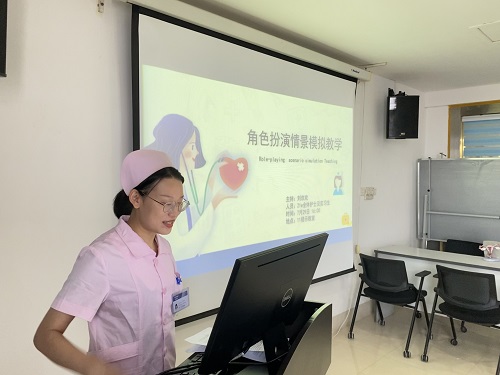7月30日下午,中南大学湘雅三医院妇科21病区在外科楼11楼示教室开展“角色扮演情景模拟教学”活动,医院护理教研室主任毛平、副主任黄辉,21病区护士长戴婵媛及全体护理带教老师参加,科室总带教刘欢欢主持。活动旨在进一步丰富临床带教形式,让学生在高度仿真的情境中获取知识,从而提升护理实习生学习效果。