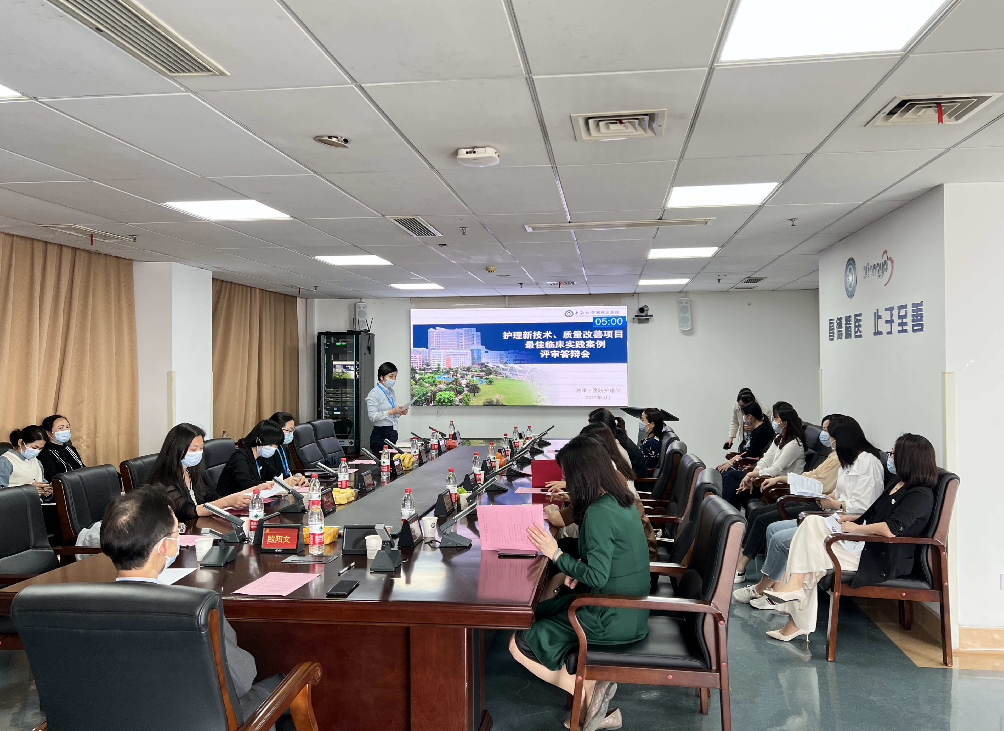 4月8日下午,中南大学湘雅三医院护理部在外科楼19楼会议室召开了2022年度护理新技术、质量改善项目、最佳实践案例评审答辩会,会议旨在推动医院护理工作的规范化、科学化,提升护理管理及专业技术水平,为患者提供更安全优质的临床护理服务。医院党委委员、副院长欧阳文出席,医务部主任张翼、药学部主任左笑丛、医院感染控制中心副主任(主持工作)曾赛男、心血管内科汪文娟副教授作为评审专家出席,护理部、护理教研室成员及汇报代表等30余人参加。会议由护理部主任严谨主持。