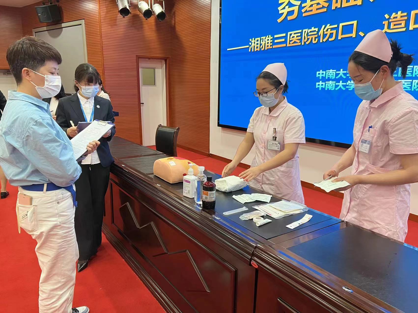 4月21日下.午,中南大学湘雅三医院护理部联合院工会举办的“中国梦·劳动美”职工岗位技能竞赛“夯基础、强技能”——新湘雅伤口、造口压疮护理知识技能竞赛圆满落幕。医院党委副书记、工会主席杨飞龙,院工会常务副主席熊晓云、护理部主任严谨等相关职能部门负责人出席。本次大赛特邀湖南省肿瘤医院国际造口治疗师朱小妹、中南大学湘雅二医院国际造口治疗师杨静担任评委,同时,邀请医院国际造口治疗师曹海梅、龚妮、卜平元、龚丽娜担任本次大赛的评委。