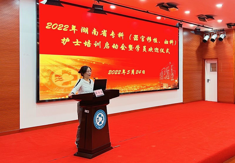 5月24日上午,2022年湖南省器官移植科、妇科专科护士培训启动会暨学员欢迎仪式在中南大学湘雅三医院外科楼二楼学术报告厅顺利召开。护理部主任严谨,护理学教研室主任、器官移植基地负责人毛平,器官移植科主任明英姿,妇科副主任易水晶,妇科基地负责人卜平元,科护士长吴小霞、龚妮、肖涛以及部分专科师资和专科学员参加。会议由护理部副主任谢建飞主持。