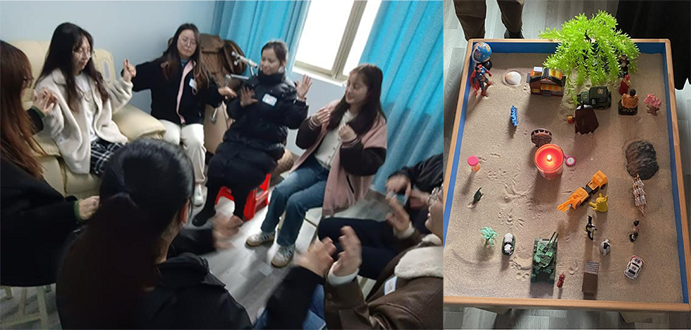 在心理导师的带领下,活动以热身小游戏开始,充分调动参与人员积极性。以自我介绍、优点风暴、正念放松、画压力圈圈图、抚沙、摆放沙具、分享职业生命线规划、合唱歌曲等为主要环节,帮助新护士放松身心,彼此交流工作中的收获与感受,让大家更加清楚认识自己与他人、理想与现实、合理的规划与实际的努力。在轻柔的音乐和对彼此的祝福中结束,使新护士们感受到宁静与放松,获得了更进一步的力量。新入职护士在活动过程中回顾过去,展望未来。梳理自己的成长路线,分享收获和快乐,直面压力与烦恼。
