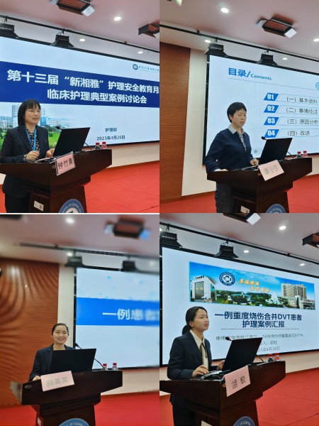 4月26日下午,第十三届“新湘雅”护理安全教育月系列活动之临床护理典型案例讨论会在外科楼二楼学术报告厅举行。护理部全体成员和全体护士长参加会议,特邀临床心理科主任唐秋萍、血管外科主任姚凯、医务部副主任刘华庆出席会议,会议由护理部副主任钟竹青主持。