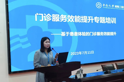 7月11日晚,护理部联合门诊办在外科楼二楼学术报告厅开展“门诊服务效能提升”专题培训。ISE国际服务效能研究中心医疗行业导师赵丽群博士受邀授课。此次培训覆盖门诊、采血室、治疗室、物业导诊等100多位窗口服务工作人员。培训由护理部张秋香科护士长主持。