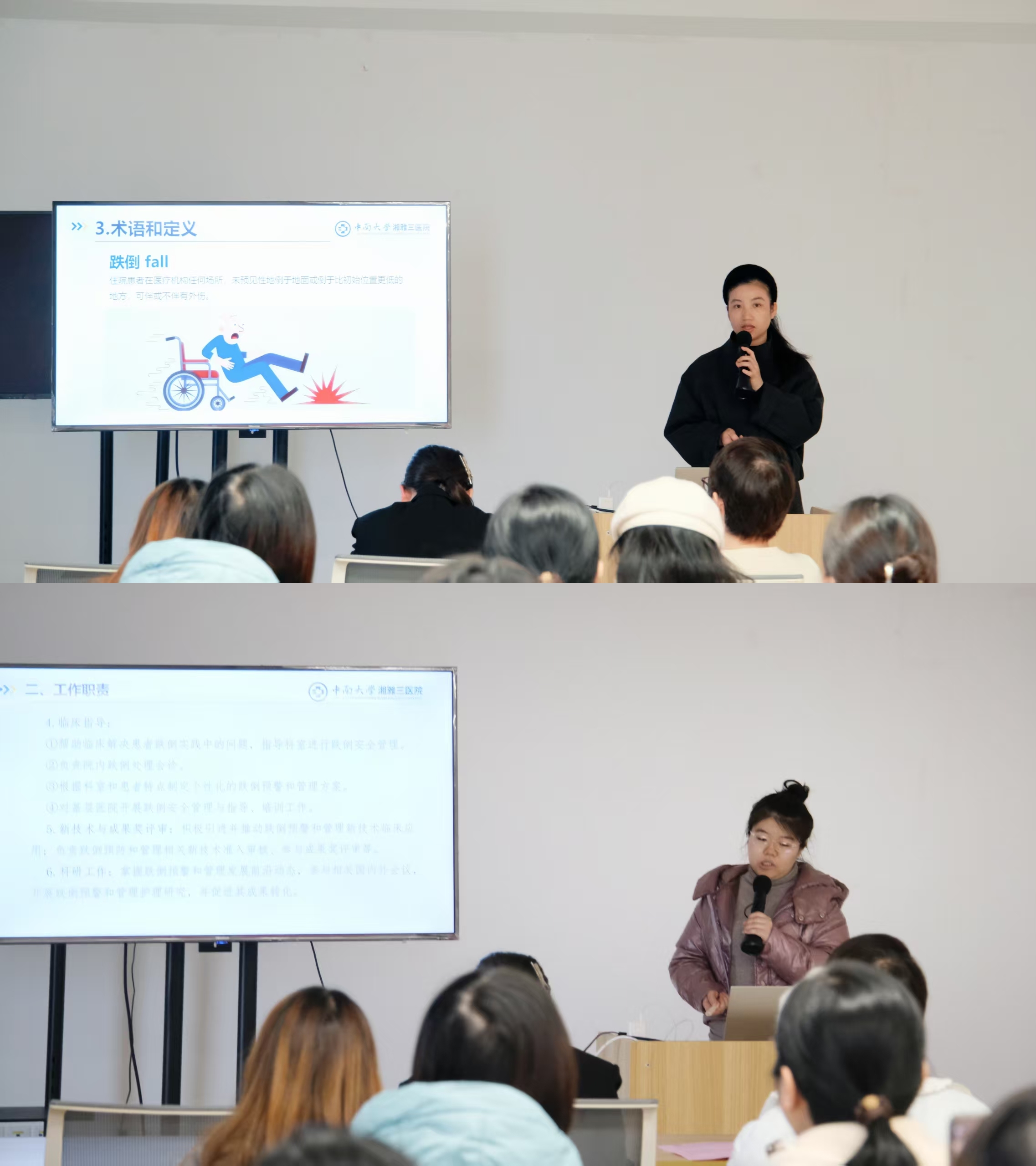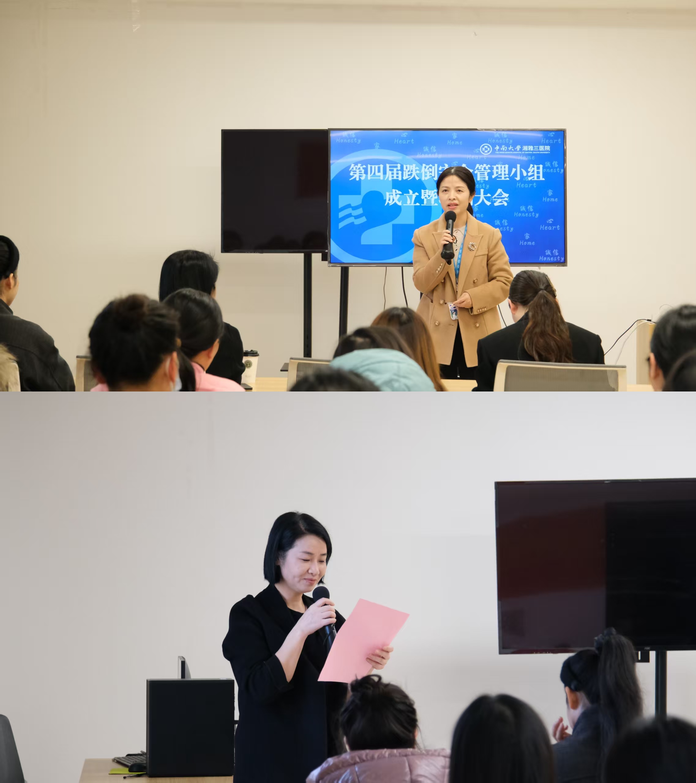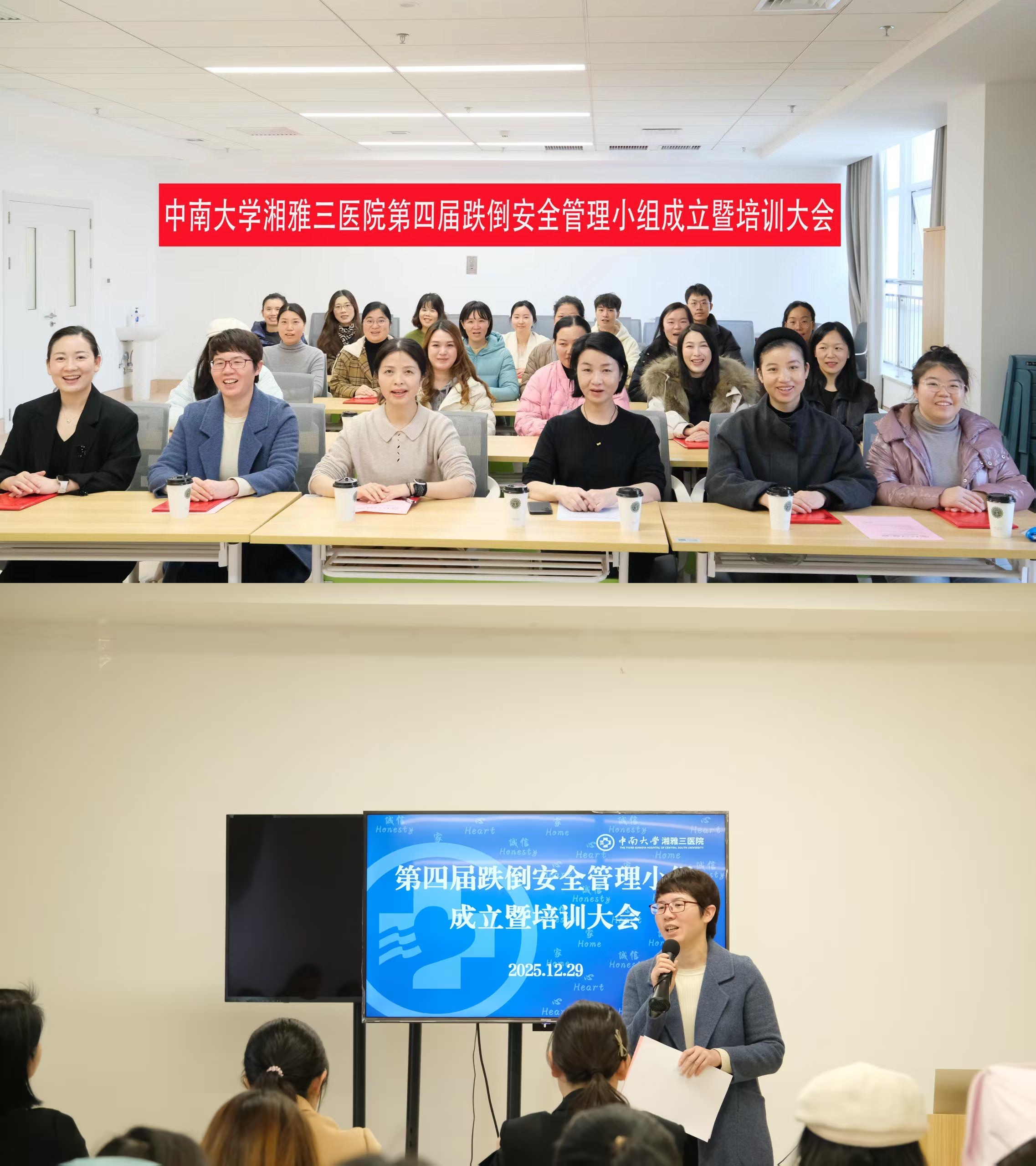 12月29日下午,中南大学湘雅三医院第四届跌倒安全管理小组成立暨培训大会在门诊楼834会议室召开,护理部副主任易琦峰、科护士长吴小霞以及跌倒安全管理小组22名组员参会,会议由血液内科一病区护士长、跌倒安全管理小组组长李成媛主持。