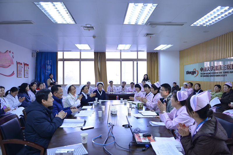1月8日-9日,以中南大学湘雅护理学院党委书记李涛、院长唐四元为代表的考核专家组来到湘雅三医院,对在湘雅三医院实习的2016级护理本科生25人、研究生38人进行为期2天的中期考核。湘雅三医院党委委员、副院长吕奔,护理部主任严谨,副主任钟竹青、谢建飞,科护士长夏妙娟、卜平元、龚妮,护士长秦春香以及护理教研室全体人员参加。
