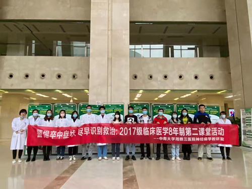 10月29日是第16届“世界卒中日”,中南大学湘雅三医院神经病学教研室在教务部的支持下组织2017级8年制同学,举办了以“警惕卒中症状、尽早识别救治”为主题的第二课堂活动。因疫情防控需要,活动还邀请传染病学教研室共同宣讲疫情防控相关知识及如何将疫情防控与疾病科普相结合。此次活动由神经病学教研室吴金泽医生、传染病学教研室陈丽敏医生具体实施策划。