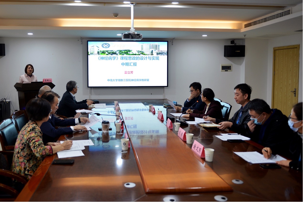 获得2020年中南大学课程思政建设研究项目立项的2位教师依次进行了项目中期检查汇报。老师们介绍了各自项目的基本信息、所做的主要工作、已取得的阶段性成果、建设中存在的主要问题、下阶段工作计划、预计目标以及资助经费使用情况。评委专家一致认为项目开展顺利,取得了预期效果。