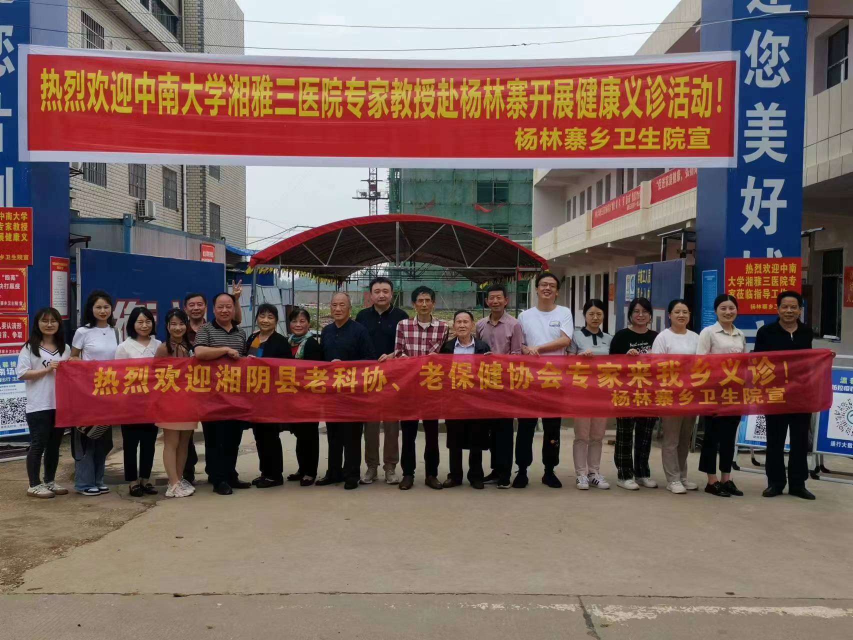 5月29日,中南大学湘雅三医院第十一党总支在岳阳市湘阴县杨林寨乡开展“健康‘湘’伴,‘医’起未来”义诊活动。医院第十一党总支书记刘典带领耳鼻喉科、心血管内科、老年医学科、消化内科、神经内科、妇科等12名博士研究生为杨林寨乡12个村庄的村民义诊,湘阴县卫生健康局常务副局长钟立新和副局长吴泽红参加。