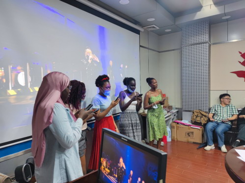 同学们还进行了自编节目展示。第一组同学一首《稻香》获得了在场同学们的共鸣;第二组同学唱起了最近大热的《爱你》吸引大家翩翩起舞;紧接着一首《最炫民族风》的爵士舞Popping动感十足;留学生组一曲《My Love》将现场气氛推至高潮。