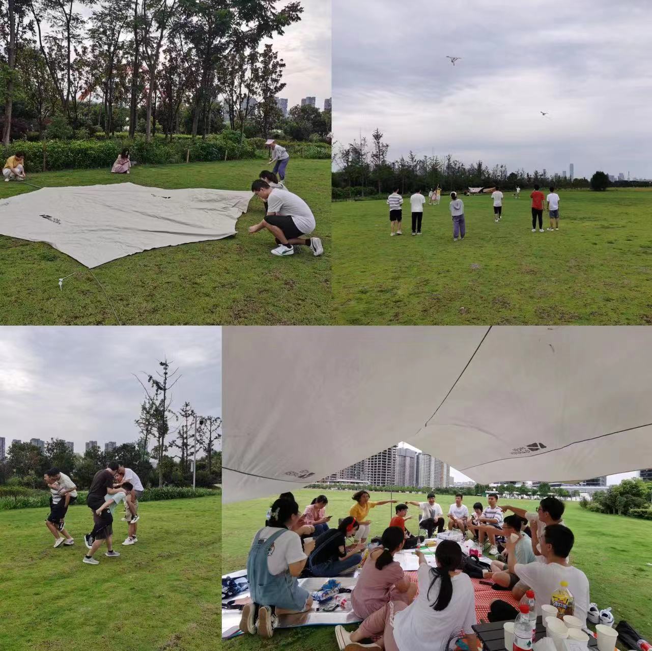到达滨江公园后,在老师的带领下,同学们群策群力,搭建天幕,平铺地垫,准备好零食和饮料,为活动做好充分准备。在搭建天幕过程中,同学们学以致用,应用外科打结手法,顺利搭建天幕。