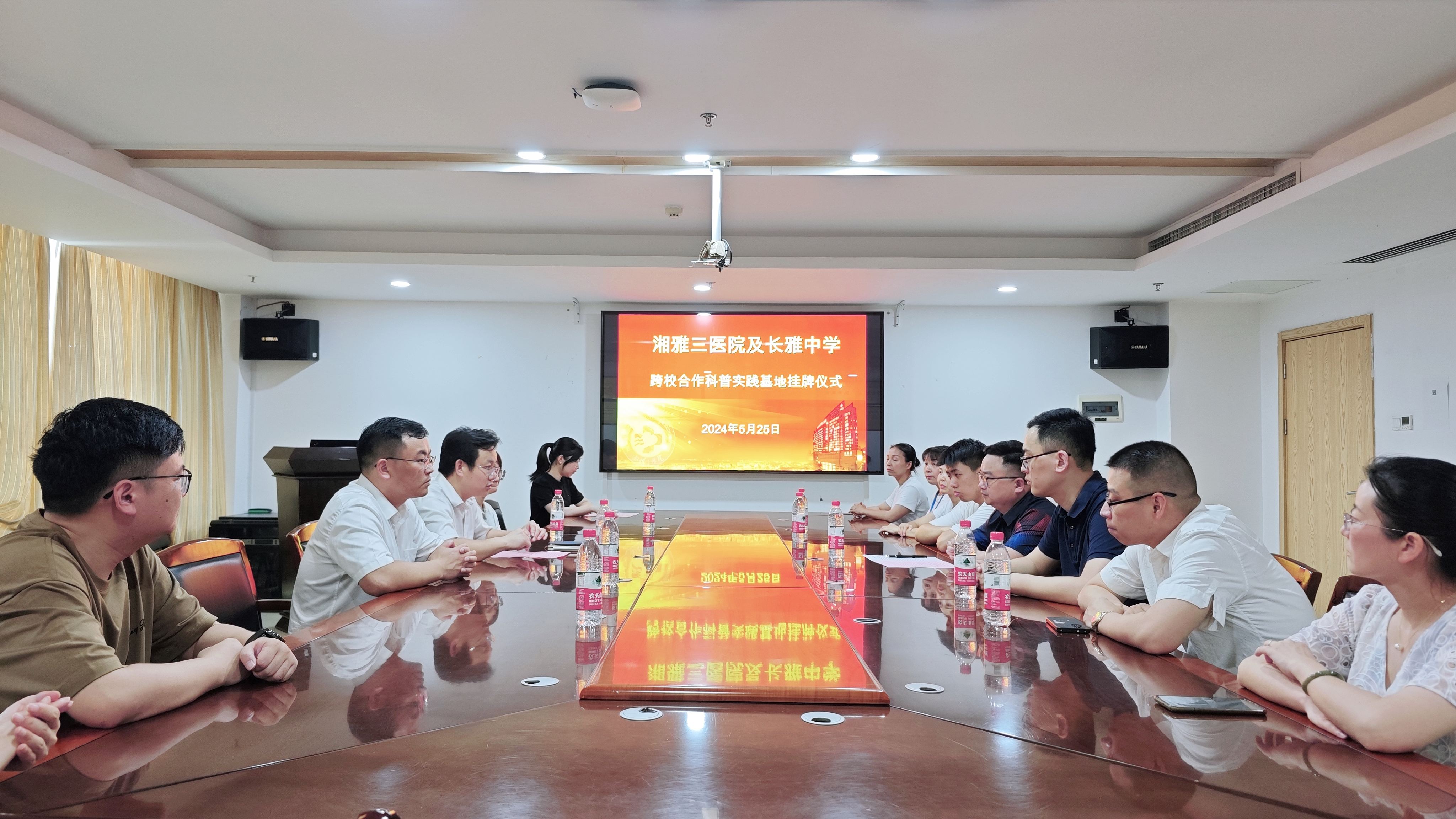 与此同时,湘雅三医院及长雅中学跨校共建医学科普实践基地授牌仪式正式举行,湘雅三医院党委委员曹科副院长、长雅中学黎云校长、何毅副校长以及教务部相关工作人员、脱产教师代表、学生代表参加了相互授牌仪式。仪式由教务部王芳副主任主持。