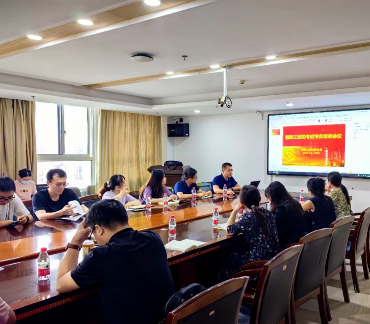 2024年6月28日上午,中南大学湘雅三医院(第三临床学院)组织召开了一场针对考核考务的专题培训会。湘雅医学院党委委员、医学教育办刘志勇,国际教育学院李建瓴、廖阳华,湘雅三医院教务部副主任王芳、覃小丽与教辅人员、部分脱产教师代表共计30余人参加了此次培训会,会议由覃小丽主持。