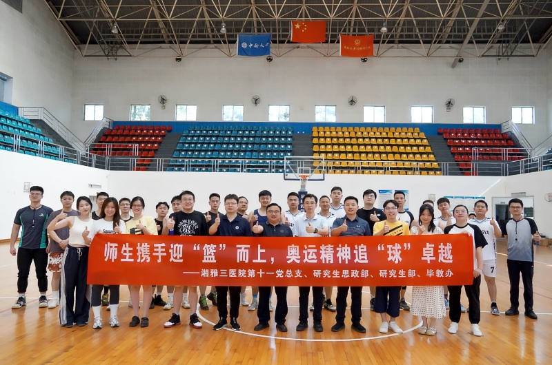 8月10日上午,巴黎奥运会正如火如荼地进行,中南大学湘雅三医院第十一党总支集结师生,以篮球之名书写热血青春,以青春实践响应党的号召。为更好地推动践行奥林匹克精神,丰富医学生的课余生活,提高教职工和医学生的身体素质,培养师生团队协作能力,彰显顽强拼搏的体育精神,医院研究生思政部、研究生部、毕教办、团委在湘雅医学院新校区体育馆举办了“师生携手迎‘篮’而上,奥运精神追‘球’卓越”为主题的师生联谊篮球赛。医院党委委员、副院长曹科等师生近50余人一起参与了本次活动。