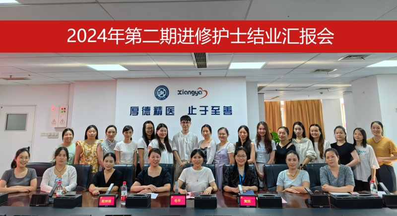 黄辉汇报了第二期进修护士培训情况及结业安排。本期进修学员自6月1日报到以来,护理部和护理教研室精心组织,安排了丰富的培训课程,开展了以护理管理、护理教学、护理科研为主题的三次专场培训,并组织参观了湘雅护理学院院史馆和教学楼,在寻根“老湘雅”护理传承的同时,感受“新湘雅”的“Honesty,Heart,Home”3H护理文化。培训过程展现了医院护理团队丰富的教学经验和强大的师资团队,获得了进修学员们的高度赞誉。