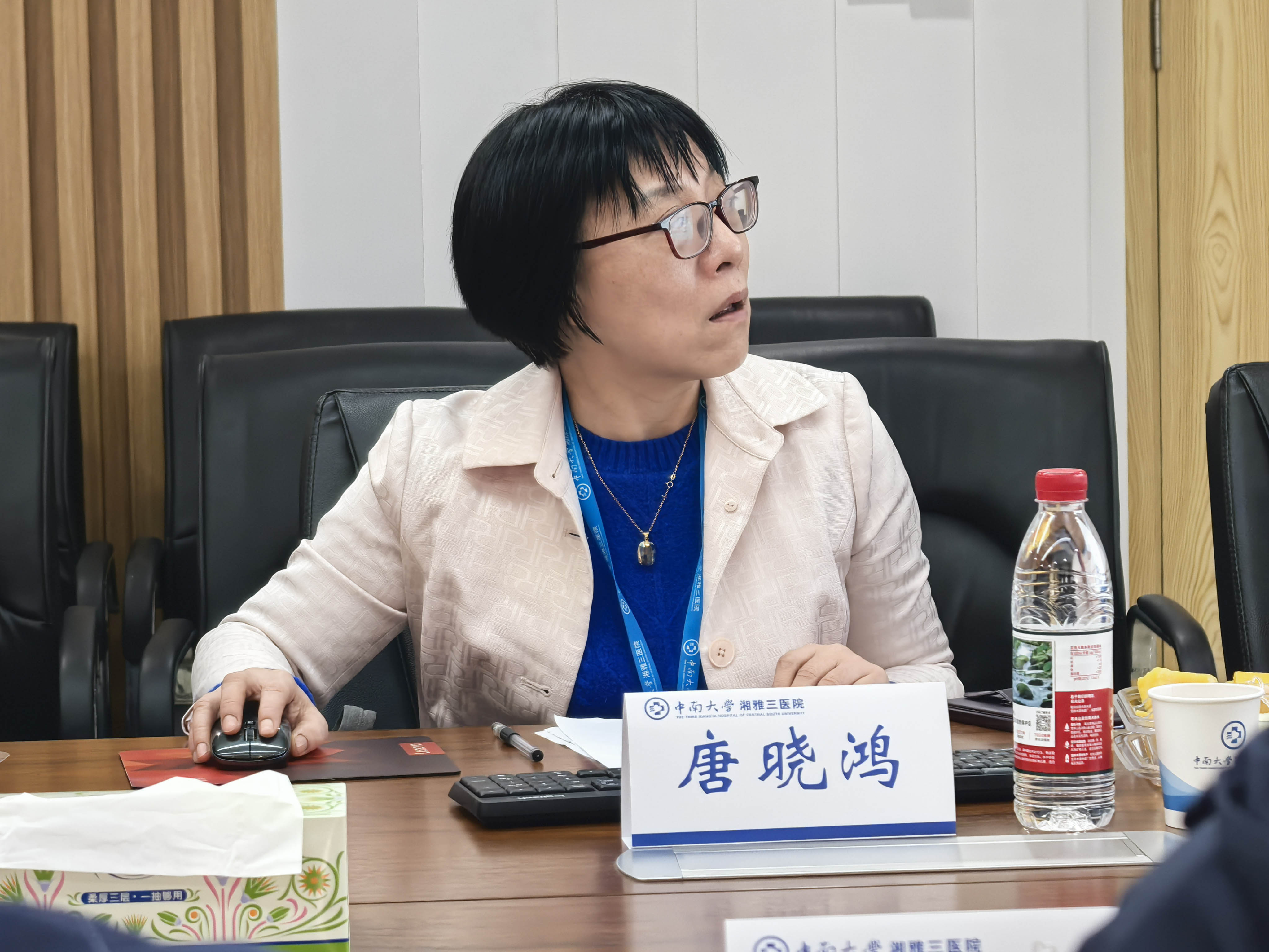 随后,唐晓鸿聚焦核心议题,详细介绍了湘雅三医院住院医师医学模拟教学体系的构建及实践。她从临床技能中心管理、住院医师规范化培训模拟教学师资队伍建设、以及住院医师分层递进模拟教学课程体系三个方面,进行了全面而深入的分享。唐主任的介绍内容翔实、案例丰富,引起了来访代表团的浓厚兴趣和高度关注。