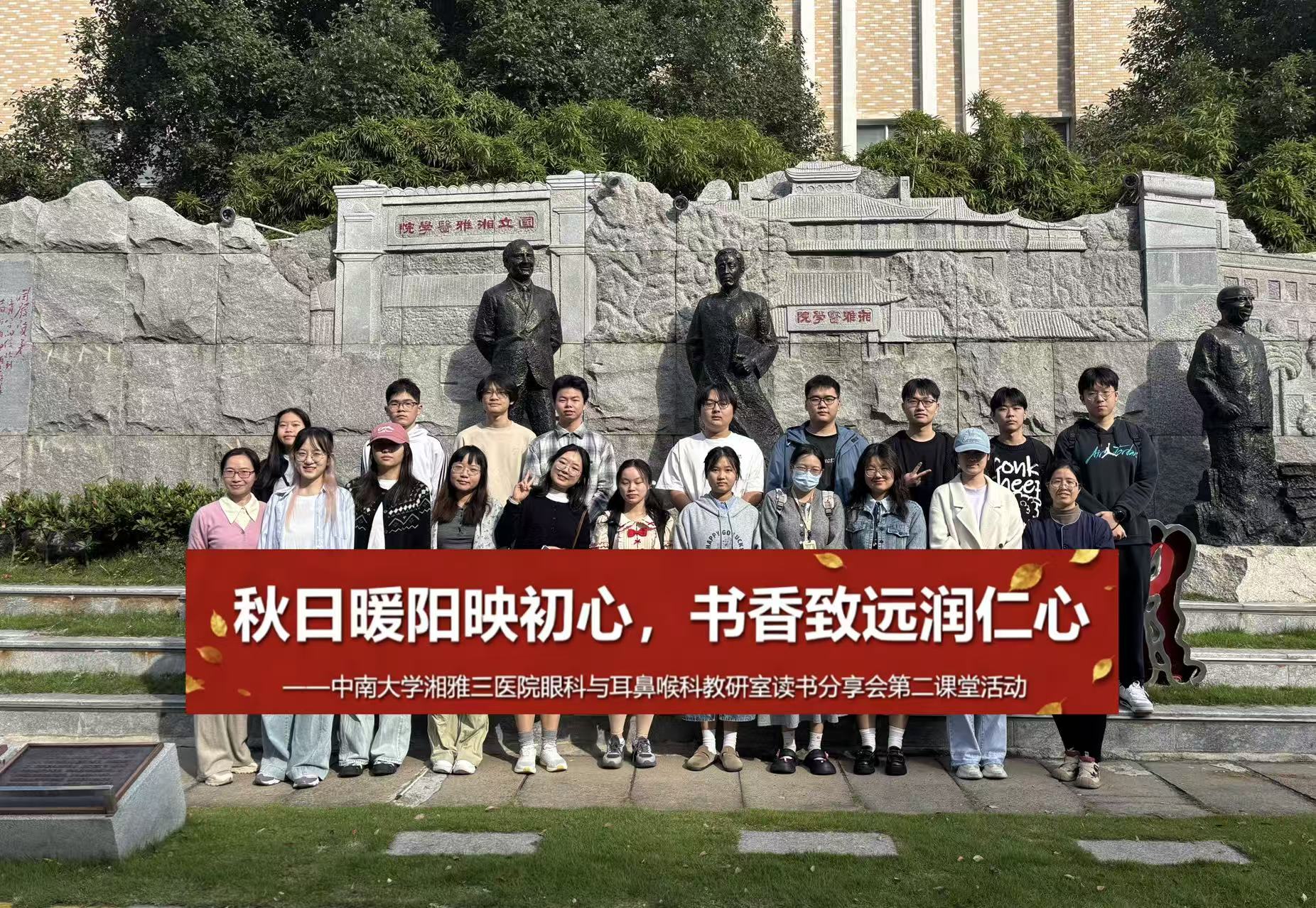 11月16日上午,中南大学湘雅三医院眼科与耳鼻咽喉头颈外科教研室组织临床五年制医学本科生5组与8组的学生开展“阅读滋养心灵,书香浸润仁术”第二课堂读书分享会。活动旨在丰富医学本科生的校园文化生活,深化人文素养与科学精神的融合培育,在馥郁书香中坚定文化自信,守护心理健康,筑牢未来医者的精神根基。