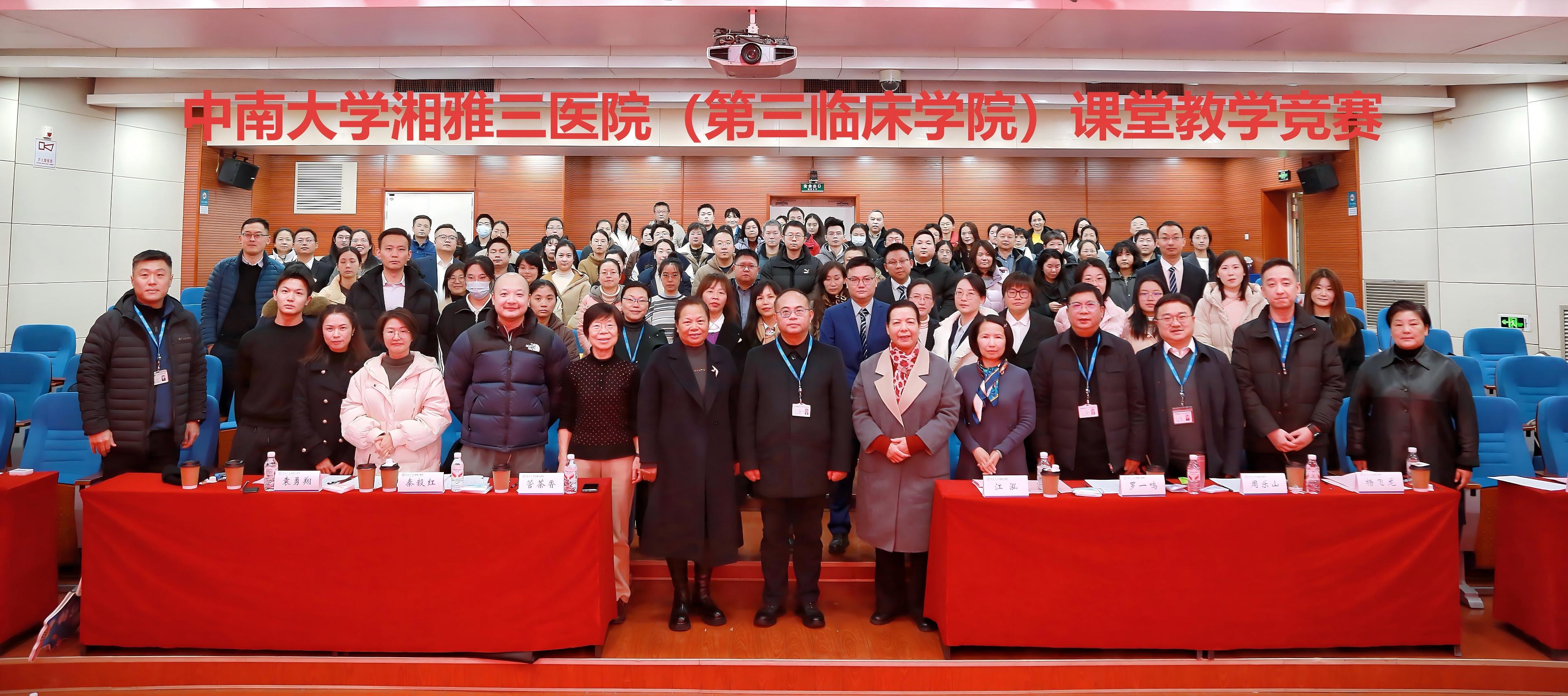 1月28日,由中南大学湘雅三医院工会联合教务部共同主办的“2025-2026 年度第三临床学院课堂教学竞赛”在外科楼二楼学术报告厅举行。医院院长江泓、党委副书记杨飞龙、副院长曹科出席,中南大学基础医学院管茶香教授、化学化工学院罗一鸣教授、冶金与环境学院秦毅红教授、湘雅护理学院周乐山教授、湘雅医院袁勇翔教授担任本次竞赛评委。各教研室参赛选手、临床带教老师及学生代表 100 余人齐聚现场,共同见证这场教学盛宴。活动由医院党委副书记杨飞龙主持。