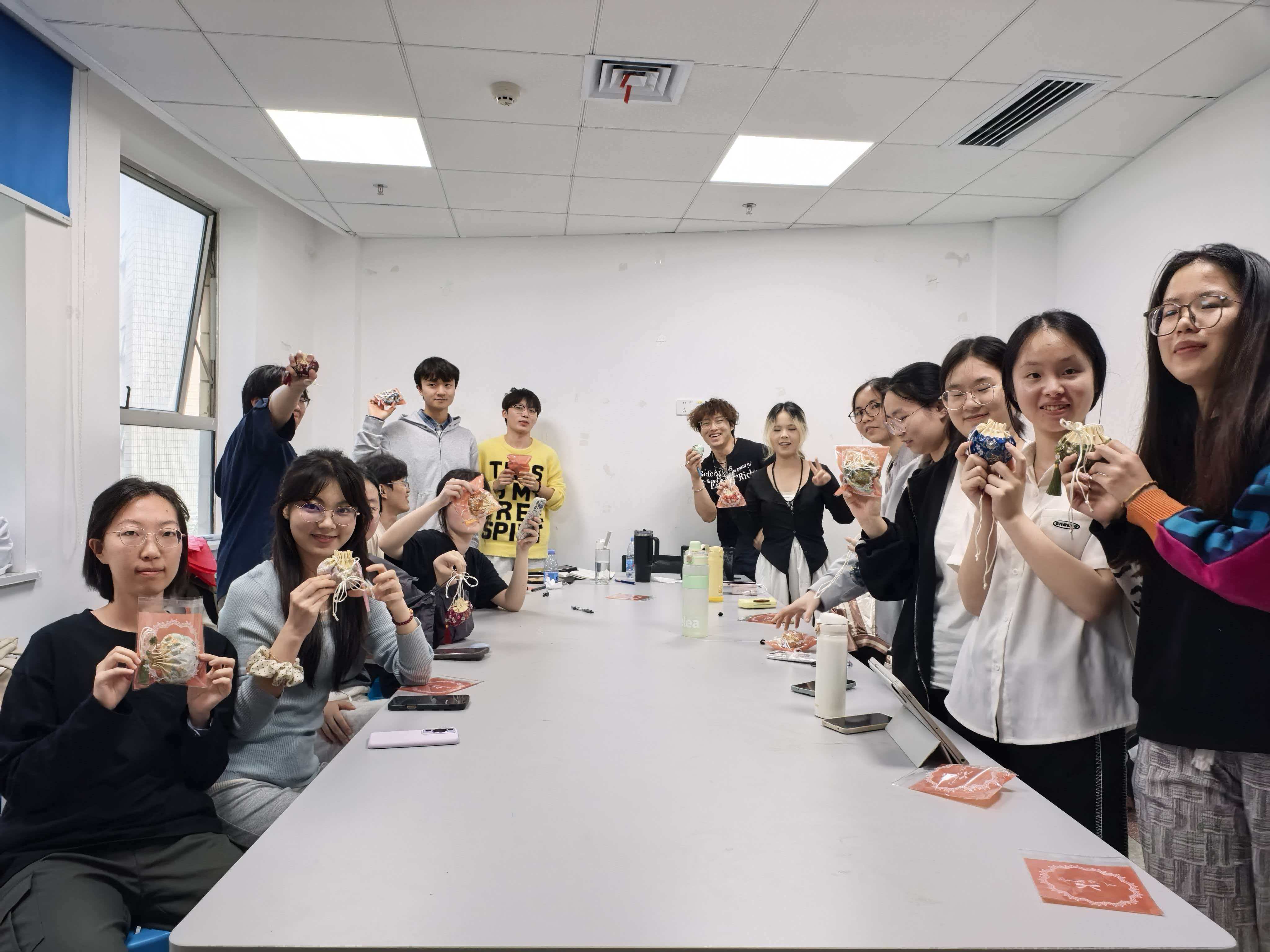 识药竞猜环节结束后,活动进入了最具实践趣味的“制作中药香囊”阶段。老师首先向同学们讲解了中药香囊的历史渊源与保健原理:“佩帷”“容臭”自古便是中医“衣冠疗法”的重要组成部分,通过佩戴含有芳香辟秽、醒脾化湿药物的香囊,可达到预防时疫、驱虫避秽、安神助眠等功效。随后,同学们在老师的指导下,自己动手调配并制作成个性化香囊。艾叶、薄荷、佩兰、白芷、丁香等多种气味芬芳的中药材,大家依据不同功效需求,遵循君臣佐使的配伍原则,称量、混合、研磨,再装入色彩斑斓的锦囊之中。同学们一边制作,一边交流各自配方的心得,教室里弥漫着沁人心脾的药草香。