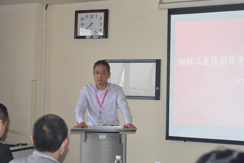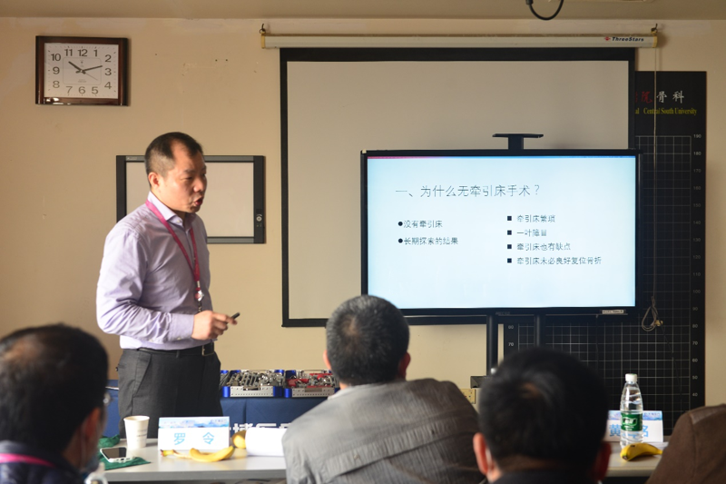 湘雅三医院骨科主任吴松教授致欢迎辞,创伤骨科主任罗令教授及其团队分别担任讲师。其中,罗令教授以“股骨转子间骨折的湘雅三医院经验”为题,进行了详实而精彩地授课,刘振东副教授汇报了“PFNA治疗老年人股骨近端骨折的体会”,刘波副教授详细讲解了“肱骨近端骨折手术要点”,杨擂主治医师就“复杂肘关节骨折脱位的诊疗”做了系统分析。另外,郭强、李骁宁、汤逸夫、黄煜钊博士也分别分享了创伤骨科常见疾病的诊疗进展。