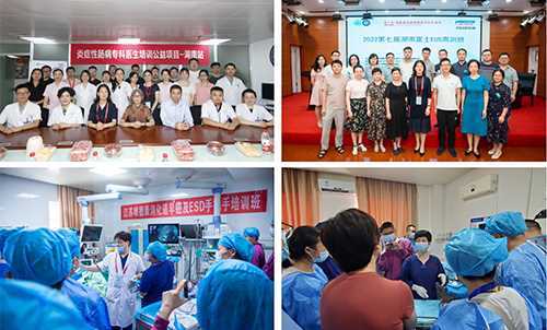 7月6日至8日,在院内举行多场次会前消化疾病与内镜技术培训班,包括“炎症性肠病专科医师培训公益项目——湖南站”、“第七届湖南富士EUS手把手高训班”、“消化道早癌及ESD手把手培训班”及“‘镜观其道’静脉曲张与内痔手把手培训班”。中华医学会消化病学分会主任委员陈旻湖、中南大学湘雅三医院院长张国刚、湘雅二医院消化内科主任刘德良等分别为培训会致辞。本次会前培训班内容丰富、实战性强,就高难度EUS操作和介入治疗、消化道早癌内镜精查和ESD策略、食管胃底静脉曲张及内痔治疗等方面,邀请本领域国内顶尖专家进行线上线下相结合的专题讲座、内镜演示及手把手培训,吸引来自湖南省各基层单位的100余名消化内镜医师来交流学习,规范消化内镜及消化疾病的诊疗过程,学员们纷纷表示干货满满,收获良多。