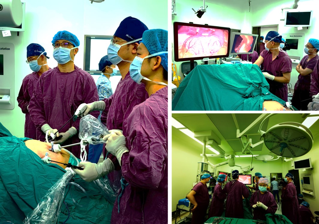 当日,由朱晒红及朱利勇主刀完成的4台腹腔镜下袖状胃切除术演示顺利结束。随后,两位专家针对手术中的各处技术细节,为学员们作出详细精彩的讲解。