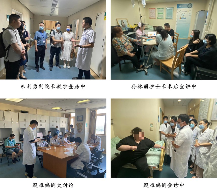 19日下午,减重代谢外科、呼吸内科、心内科、心胸外科、ICU、麻醉科、感染科七个科室对一位350斤超级肥胖合并重度右心衰病例精心组织了一场疑难病例大讨论,进一步加深了与会学员对于肥胖疾病及代谢外科围术期管理的认识。朱利勇随后带领学员们进行教学查房,通过具体案例向学员讲解减重代谢手术患者管理要点。护士长孙林丽通过术后宣教与健康管理科普,向参与培训的个案管理师讲解了减重代谢手术后的患者院外自我管理知识。