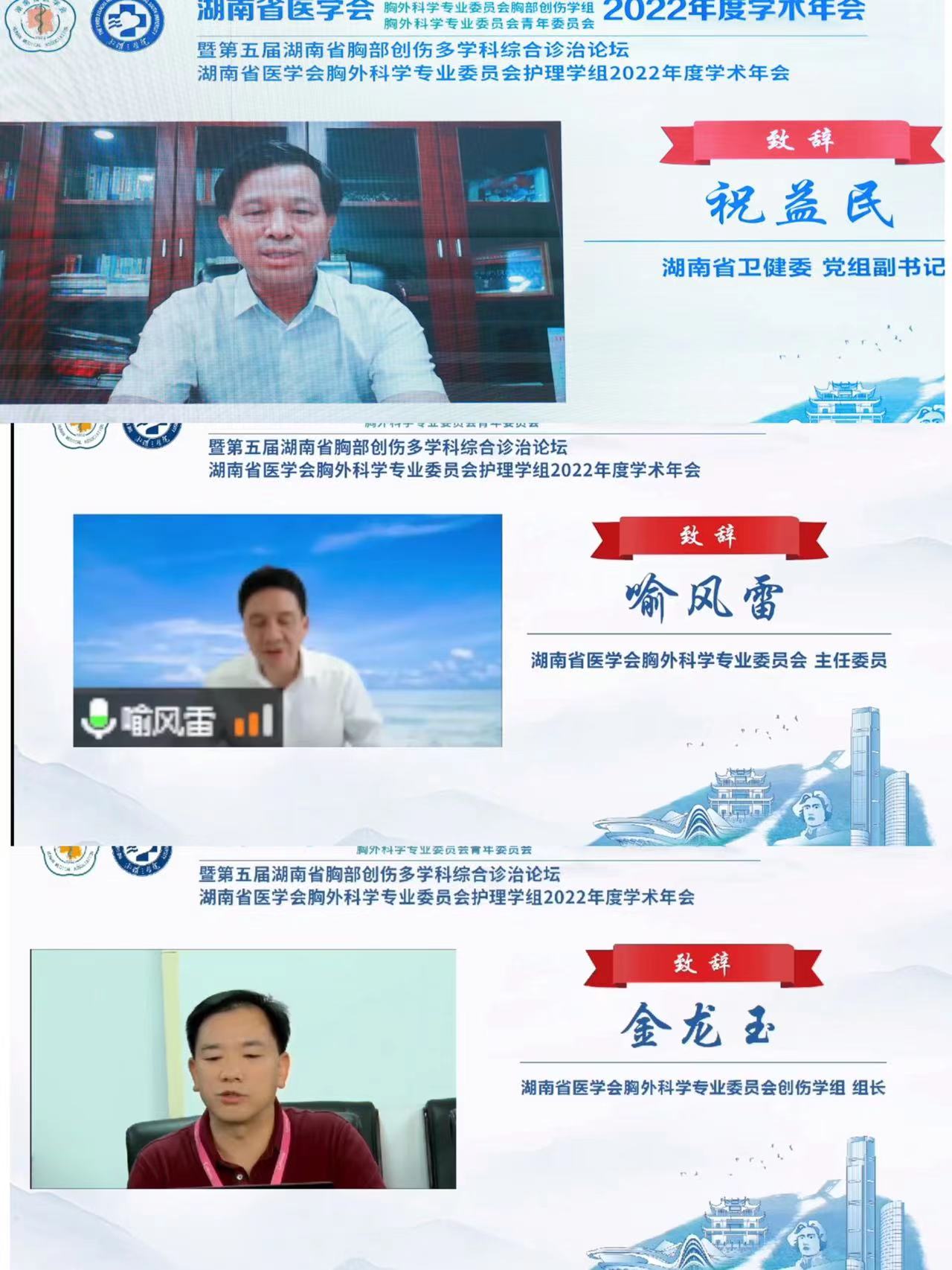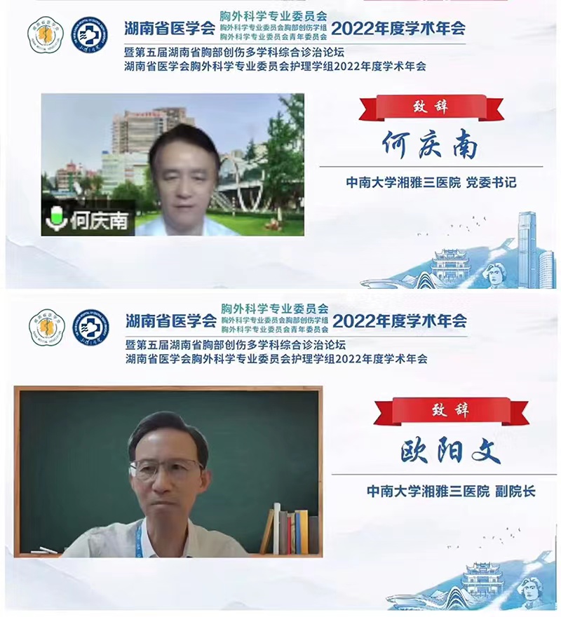 金秋九月,丹桂飘香。9月17日至18日,由湖南省医学会胸外科专业委员会、湖南省医学会胸外科专业委员会胸部创伤学组主办,中南大学湘雅三医院承办的湖南省医学会胸外科学专业委员会2022年学术年会暨第五届湖南省胸部创伤多学科综合诊治论坛顺利召开。此次会议采取线上形式,省内“胸外人”虽然只能在“云端”相见,但是大家仍然热情不减。