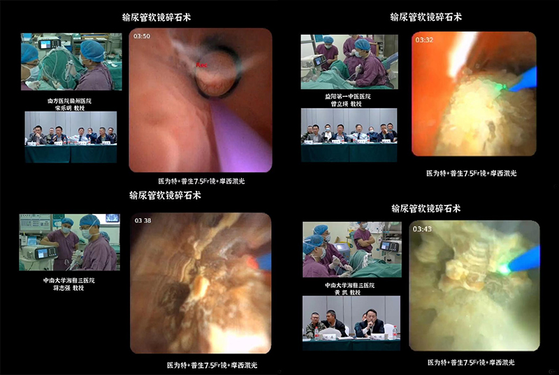 手术交流环节中,来自南方医院赣州医院泌尿外科主任宋乐明、益阳市第一中医医院曾立瑛、湘雅三医院蒋志强和黄凯通过手术直播,为与会专家学者展示了一场场精彩的输尿管软镜碎石取石手术。