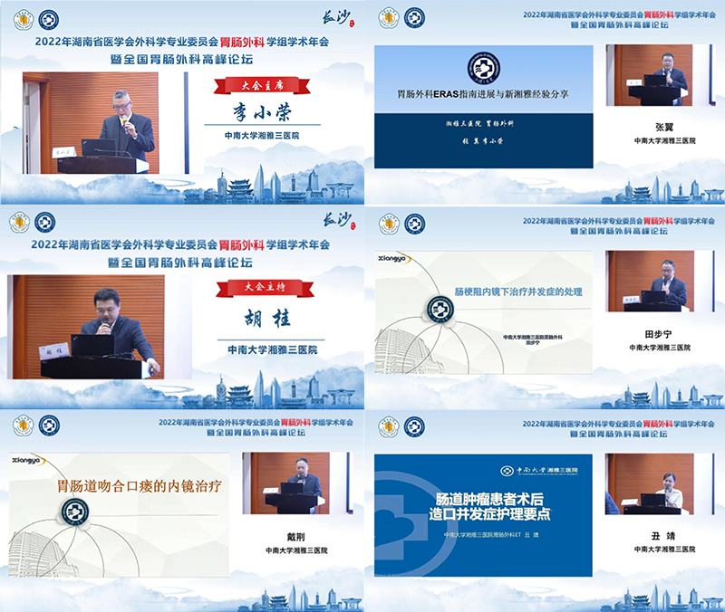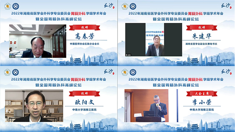 11月25、26日,由湖南省医学会主办、中南大学湘雅三医院承办的“2022年湖南省医学会外科学专业委员会胃肠外科学组年会暨全国胃肠外科高峰论坛”以线上会议的形式顺利召开。本次大会由湖南省医学会胃肠外科学组组长、中南大学湘雅三医院胃肠外科主任李小荣教授担任大会主席,胃肠外科学组副组长、中南大学湘雅三医院医务科主任张翼教授担任会议主持。