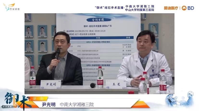 3月17日,中南大学湘雅三医院泌尿外科联合中山大学附属第三医院泌尿外科开展“御术”结石手术直播。本期手术直播交流会议是“新湘雅泌尿健康行”系列活动之一,聚焦学术交流,探讨手术技巧。会议聚集了20余位泌尿系结石领域专家,进行授课及手术交流,并全程进行线上直播,吸引5000余位学者线上观摩交流。本次直播会议由湘雅三医院泌尿外科副主任尹光明主持,湘雅三医院泌尿外科主任王龙、中山大学附属第三医院主任狄金明分别开幕致词。