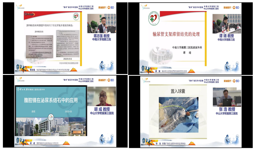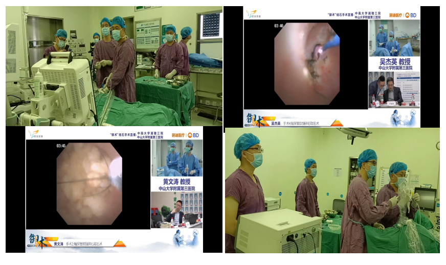手术环节,通过画面同步、实时语音交流的视频连线方式,中山大学附属第三医院吴杰英教授、黄文涛教授,湘雅三医院泌尿外科主任医师尹光明、副主任医师黄凯以四台手术的现场直播进行了输尿管软镜钬激光碎石取石术及经皮肾镜碎石取石术的手术展示。此次手术演示让学员们真正的感受到了手把手教学及真实体验,同时结合特殊病例解决方案与大家分享心得,线上学习观众直呼精彩。