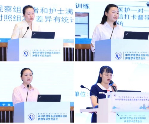 大会以“学术引领高品质专业,创新驱动高质量发展”为主题,吸引了来自全国近1000余名同仁齐聚,学习氛围浓厚。在大会发言、“锐意进取,开拓创新”创新大会交流环节,吴建红主管护师、黄沙沙主管护师、晏婷主管护师、谭楚霞护师代表团队分别汇报了“改良Aldrete评分联合SSA量表在耳鼻喉科术后患儿早期进食中的应用”、“基于沉浸式虚拟现实系统在前庭康复中的护理实践与效果评价”、“AR-SIT-SDM模式的构建在变应性鼻炎免疫治疗中的应用”、“喉癌术后不同时间段患者症状体验及心理感受的质性研究”的研究成果及经验。同时,肖益芳、吴建红、黄沙沙、晏婷、张雪恒等5位主管护师的投稿被大会作为壁报展示,充分展现了我科护理团队的创新风采和精益实践,提升了医院护理团队在国内的影响力。
