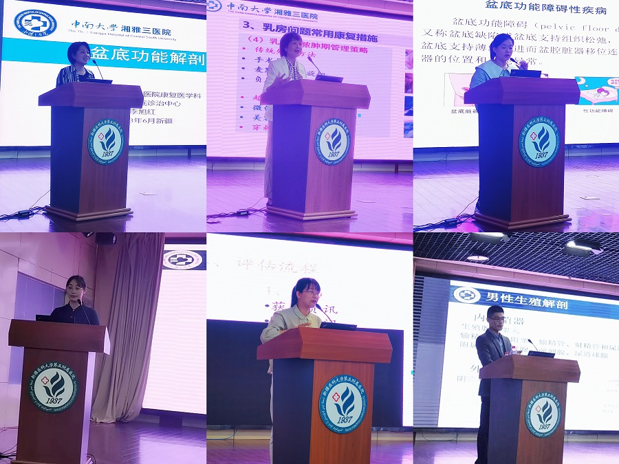 会上,中南大学湘雅三医院康复科主任李旭红教授,邓丽明副教授,王昭君、杨硕、向娟及杨永水老师分别从盆底的解剖、盆底功能障碍性疾病的评估及治疗、母乳喂养常见临床问题及处理等方面全面、详尽地分享了他们的经验。理论与实操相结合,典型病历分享,深入浅出,生动有趣,课堂氛围活跃,学员们踊跃提问,意犹未尽,收获颇丰。