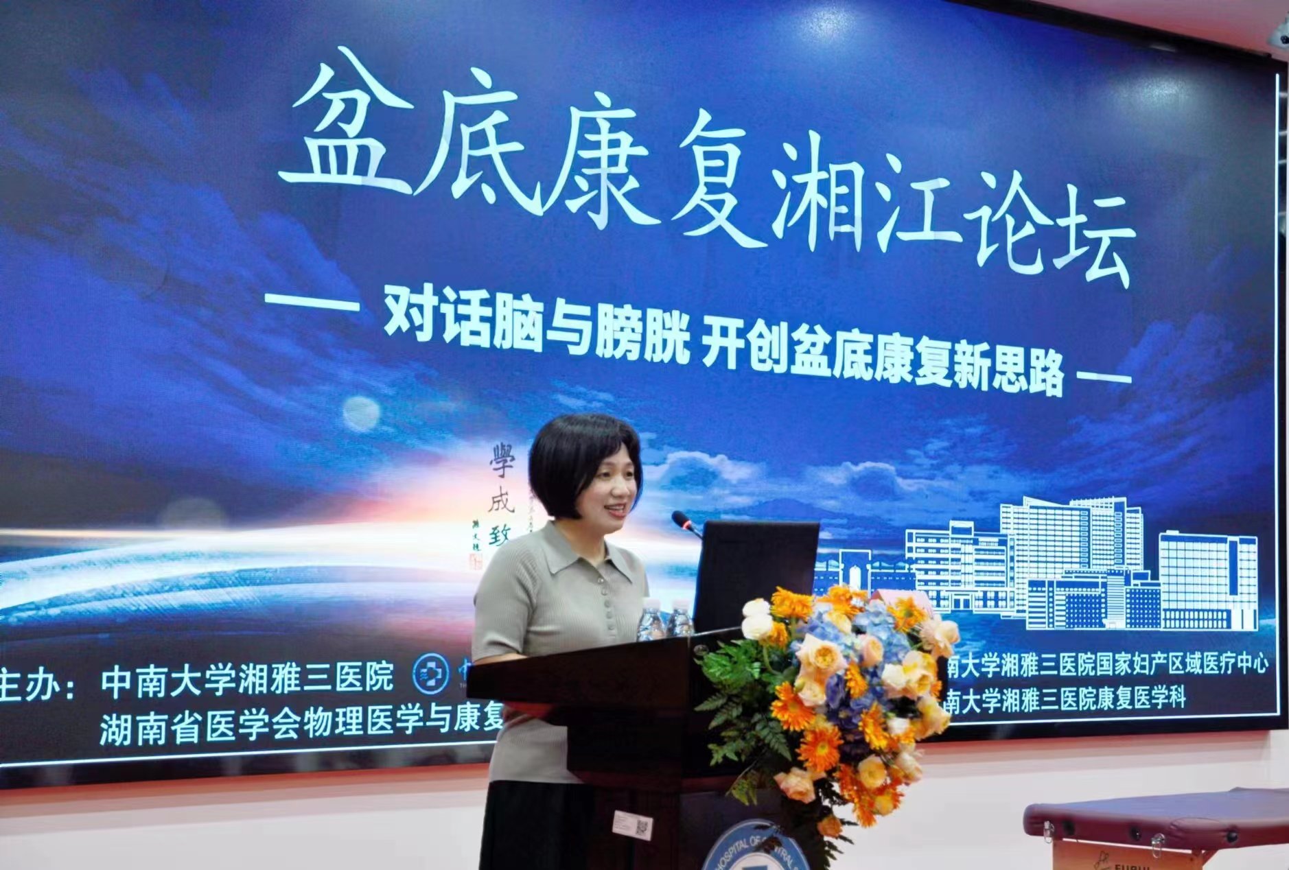 中南大学湘雅三医院院长江泓致开幕词,他简要介绍了新湘雅的发展历程,他表示,医院一直高度重视康复医学学科建设。他充分肯定了康复科团队在盆底康复领域做出的努力,并点赞康复医学科在李旭红主任的带领下实现了快速的发展,取得了不俗的成绩。最后,他希望通过此次会议,医院与全球盆底康复专家一道,进一步推动康复医学学科发展再上新台阶。