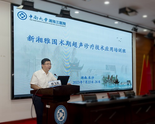 为推广和普及围术期超声诊疗技术在麻醉学科的应用,经国家和湖南省继续医学教育委员会批准,中南大学湘雅三医院麻醉科于7月22日至26日在湖南长沙成功举办为期五天的国家级继续教育项目——围术期超声诊疗技术应用培训班。湖南省医学会副秘书长郭洁,湘雅三医院党委副书记杨飞龙出席开幕式并致辞。开幕式由湘雅三医院麻醉科主任廖琴主持。