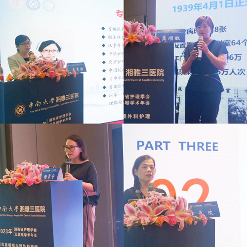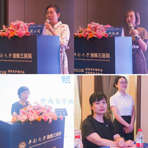 护理会场开幕式邀请了中华护理学会耳鼻喉护理专业委员会主任委员、北京大学第一医院主任护师耿小凤教授,复旦大学附属眼耳鼻喉科医院护理部主任归纯漪教授,中南大学湘雅三医院耳鼻喉科主任谭国林教授、护理部主任严谨教授、护理部副主任钟竹青教授等领导和专家出席。严谨主任致欢迎辞,希望全国耳鼻咽喉护理同仁通过此次交流学习,更好地服务患者,为实现“健康中国”的重大战略目标而努力奋进。