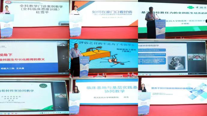 在学术交流环节,会议以“全科医疗守健康,教育先行谋未来”为主题,围绕全科医学科的医、教、研相关问题展开全面研究和讨论。首都医科大学全科医学与继续教育学院副院长、中国医师协会全科医师分会名誉会长杜雪平教授以全科教学门诊案例教学为例,对全科临床思维训练进行了生动的讲解,详细阐述全科临床思维定义、基本特征及训练与建立常用方法。中华医学会全科医学分会前任主委、中国医科大学原副校长于晓松教授做了“以提升岗位能力为目标的全科住院医师培养”为主题的精彩报告,指出全科医生岗位胜任力在基本医疗卫生服务、基本公共卫生服务等6个方面的具体要求。中华医学会全科医学分会候任主委、哈尔滨医科大学附属第二医院党委书记王永晨教授就“全科住培专长化带教模式探索”进行论述,提出“全有所专”的创新模式有利于优化稳定全科医师队伍。复旦版《中国医院专科声誉排行榜》全科医学科连续2年排名第一的复旦大学附属中山医院全科医学科主任、中华医学会全科医学分会副主委潘志刚教授详细介绍了全科规培结业考试OSCE的设计及实施要点。中华医学会全科医学分会副主委、河南省人民医院全科主任王留义教授带来的是“全科住培师资队伍建设和教学岗位职责”的专题报告,从全科理念、教学能力、组织框架等策略来提升全科医生教学能力。中华医学会全科医学分会常务委员、山西白求恩医院冯玫教授及遵义医科大学附属医院肖雪教授分别介绍了“全科与轮转科室协同教学”、“临床基地与基层实践基地协同教学”,针对教学方面分别传授关于全科与轮转科室协同教学、临床基地与基层实践基地协同教学的相关经验。苏州中科先进技术研究院数字营养中心主任万冬梅则分享了“营养干预在慢病管理中的价值及循证依据”的专题报告。