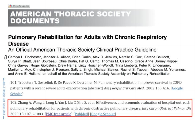 近日,中南大学湘雅三医院严谨教授团队发表的文章被美国胸科协会《成人慢性呼吸疾病肺康复临床实践指南》引用,意义深远。